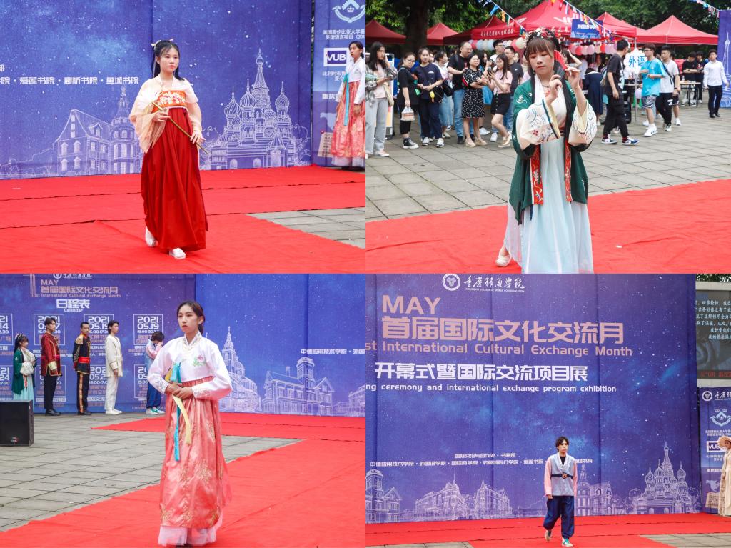 开幕式上,首先由学校模特协会带来涵盖中国、韩国、欧洲等多个国家和地区传统服饰的国际特色服装秀为活动造势。