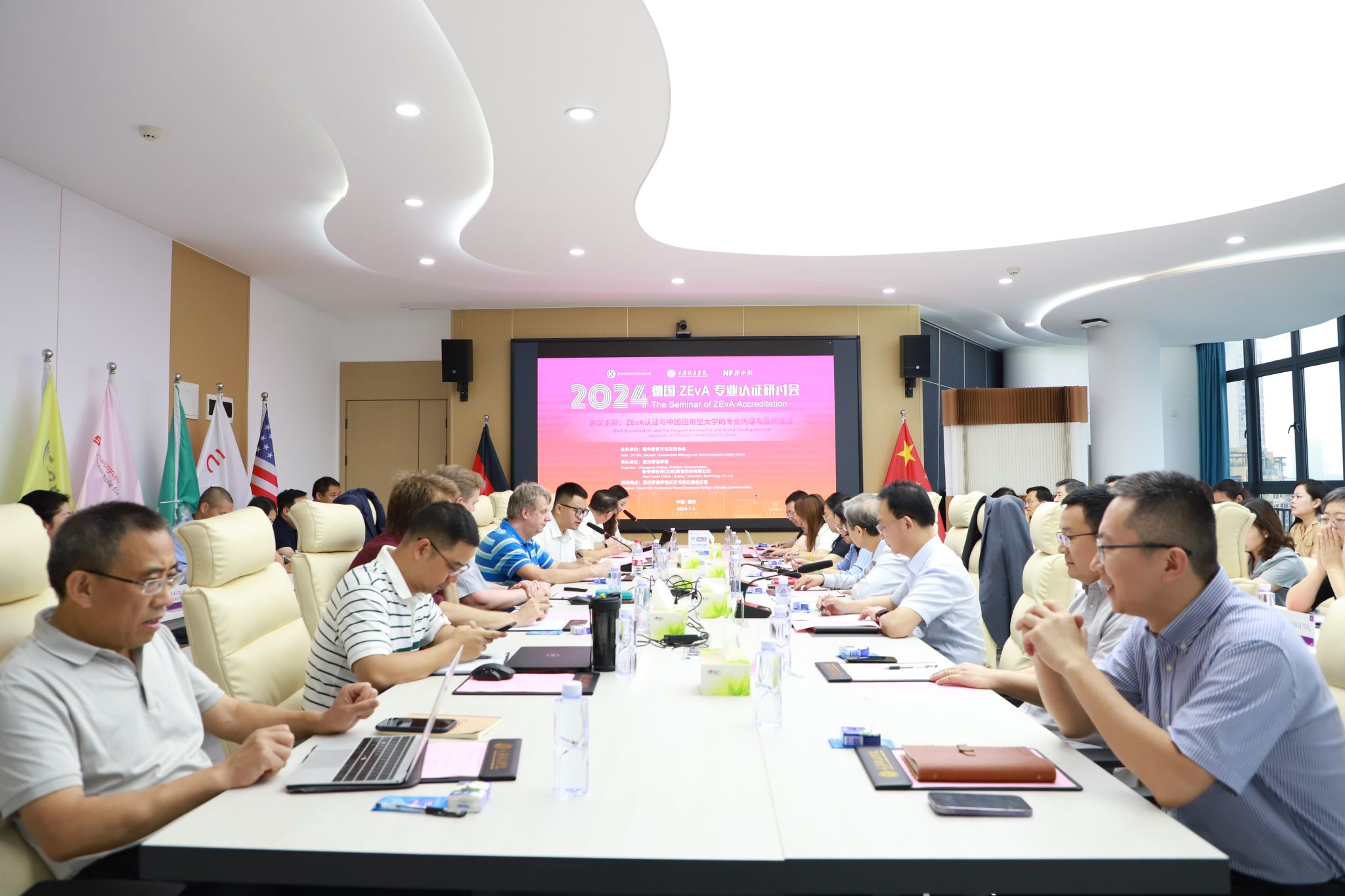 ZEvA认证委员会主席、董事总经理Henning Schäfer,中国民办教育协会副会长兼高专委理事长、教育部学位与研究生教育发展中心原主任王立生,德中教育文化交流协会执行会长、新未来在线教育科技有限公司董事长黄贵洲,执行总裁张韦韦,中国新商科大学集团副总裁尹邦满,德中教育文化交流协会副秘书长江新,重庆移通学院校长吕翊,副校长张衍学及滇池学院、吉利大学、昆明城市学院、青岛恒星科技学院、沈阳城市建设学院、无锡太湖学院、云南工商学院、南昌工学院、山东科技职业学院、重庆对外经贸学院、重庆人文科技学院共11所院校代表齐聚重庆,共同参加本次研讨会。