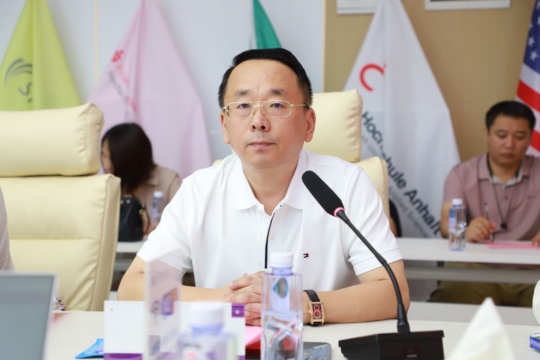 德中教育文化交流协会执行会长、新未来在线教育科技有限公司董事长黄贵洲致辞,他表示积极引进德国先进的教育理念与专业认证体系对于提升教育教学质量,助力学校专业内涵建设,促进国际间教育交流与合作具有重要作用。