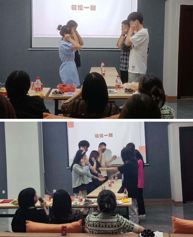 颁奖环节结束后便是轻松一刻,该环节分为两个部分,抢水大战和折星星留祝福语。在抢水大战中,各位团员踊跃参与,在温暖的比赛氛围中“一较高下”。待到春暖花开再相遇,各位团员折下星星,寄予来年加入国际处的学弟学妹们祝福和希望。这一刻,大家的欢笑声充斥着整个活动室。