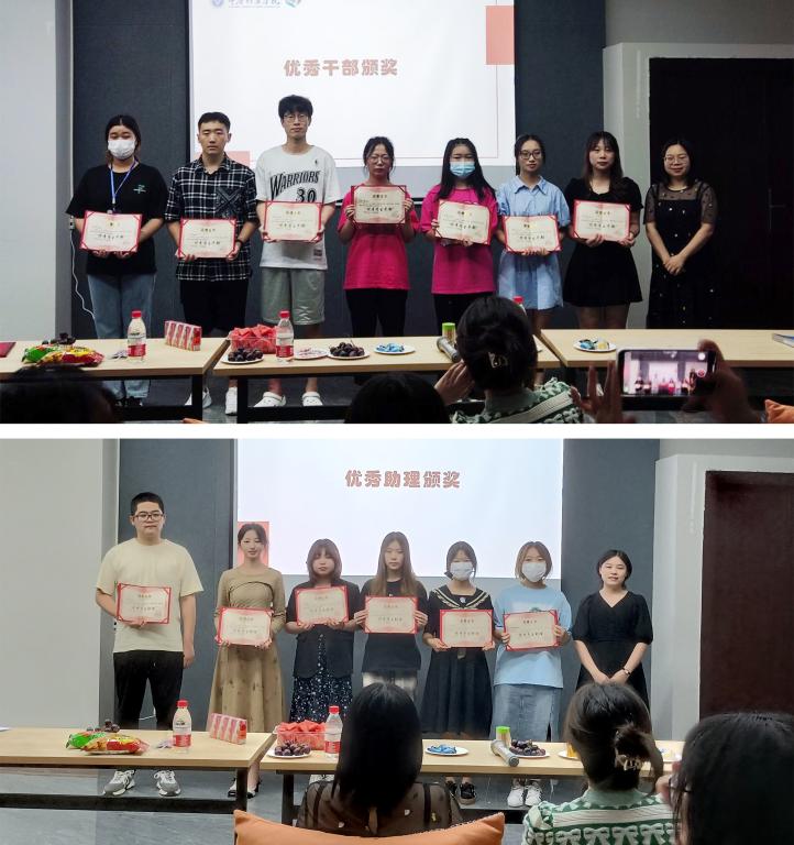 在简单的暖场环节之后,主持人张运灿宣读了第八届大学生国际助理处的优秀部长和干事名单,并邀请老师们为各位优秀团员颁发证书。各位优秀部长和干事分别上台进行总结发言,真情流露的发言稿中感慨到一年以来收获许多,并强调自己仍会再接再厉。