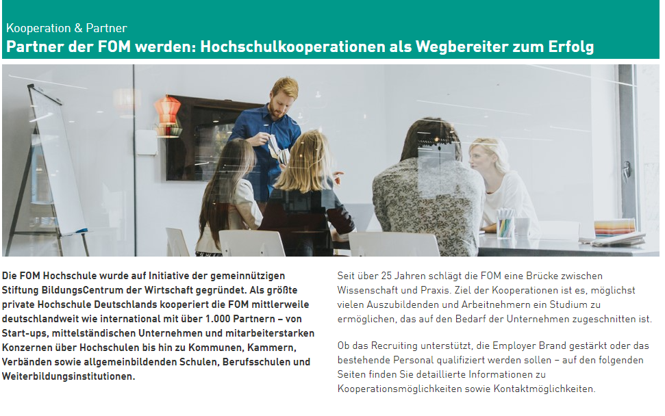 FOM为协会和商会的员工开设课程,联合设计课程,提供信贷选择,支持行业出版物和招聘工作。